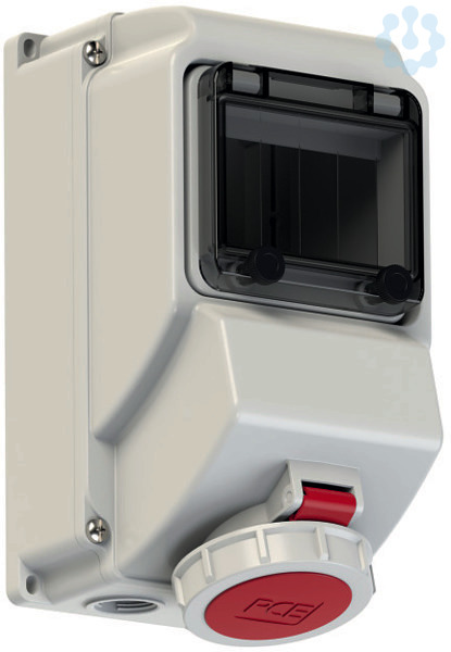 CEE-Wandsteckdose mit Fenster 16A 4p 6h IP67; Gehäusematerial: PC/ABS; Nennstrom: 16A; Polzahl: 4 (3P+PE); Uhrzeit-Stellung: 6h; Nennspannung/Frequenz: 380-415V~ / 50+60Hz; Kontakte: Messing vernickelt; Anschlusstechnik: Schraubklemmen; Leitungseinführung: oben, unten oder hinten; inkl. Blindverschraubung; Klappfenster (5 Module) und DIN Schiene; Schutzart: IP66/IP67