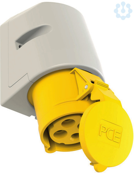 CEE-Wandsteckdose 32A 4p 4h IP44; Gehäusematerial: PA6; Nennstrom: 32A; Polzahl: 4 (3P+PE); Uhrzeit-Stellung: 4h; Nennspannung/Frequenz: 100-130V~ / 50+60Hz; Kontakte: Messing; Anschlusstechnik: Schraubklemmen; Leitungseinführung: oben oder hinten; inkl. Würgenippel; Schutzart: IP44