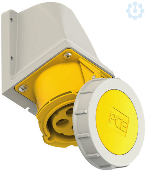 CEE-Wandsteckdose 32A 4p 4h IP67; Gehäusematerial: PA6; Nennstrom: 32A; Polzahl: 4 (3P+PE); Uhrzeit-Stellung: 4h; Nennspannung/Frequenz: 100-130V~ / 50+60Hz; Kontakte: Messing; Anschlusstechnik: Schraubklemmen; Leitungseinführung: oben oder hinten; inkl. Blindverschraubung; Schutzart: IP67
