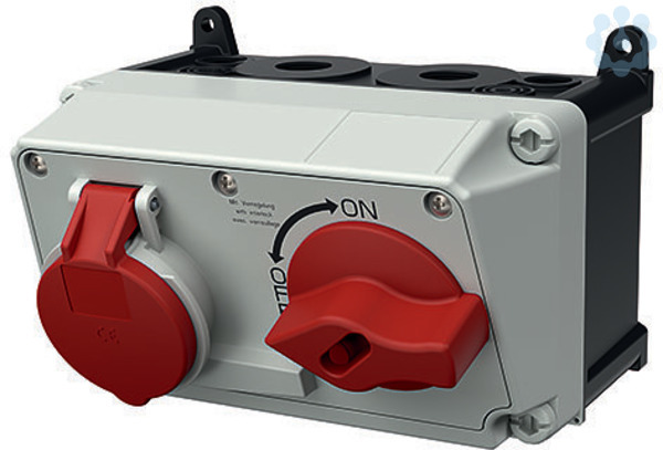 32A5P 6H400V AMAXX DUO Wanddose IP 44 horizontal mit Lasttrennschalter KH32 3P, Gehaeuse 130 x 225 mm (H x B) Leitungseinfuehrung: 2 M 32 oben (links offen, rechts verschlossen) 2 M 32 unten (verschlossen) je 2 M 20 oben und unten (verschlossen)