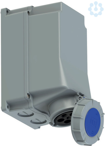 CEE-Wandsteckdose 63A 5p 9h IP67 POWER TWIST; Gehäusematerial: PC/ABS; Nennstrom: 63A; Polzahl: 5 (3P+N+PE); Uhrzeit-Stellung: 9h; Nennspannung/Frequenz: 120/208V~ - 144/250V~ / 50+60Hz; Kontakte: Messing, mit Lamellenkontakt (CuBe); Anschlusstechnik: Rahmenklemmen mit Schrauben; Leitungseinführung: oben, unten oder hinten (Gehäuse 180° drehbar); inkl. Blindverschraubung; Schutzart: IP66/IP67