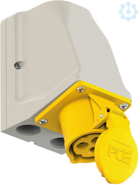 CEE-Wandsteckdose durchschleifbar 16A 3p 4h IP44; Gehäusematerial: PA6; Nennstrom: 16A; Polzahl: 3 (2P+PE); Uhrzeit-Stellung: 4h; Nennspannung/Frequenz: 100-130V~ / 50+60Hz; Kontakte: Messing; Anschlusstechnik: Schraubklemmen; Leitungseinführung: oben, 2x unten oder hinten; inkl. Würgenippel; Gehäuse durchschleifbar; Schutzart: IP44