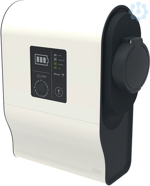 Legrand Green'Up Wandladestation 3,7/4,6 kW, Ladesteckdose Typ 2 mit Berührungsschutz, zur Ladung von elektrischen Fahrzeugen nach IEC 61851-1 Mode 3, 1-phasiges Laden 230 V AC, Ladeleistung einstellbar: 3,7 oder 4,6 kW / Ladestrom 16 oder 20 A. Anzahl der Ladepunkte: 1, Schutzart IP 44 - IK 08, Material: Kunststoff, Farbe: Weiß/Schwarz, Abmessung (HxBxT): 365 x 295 x 140 mm, zur Montage direkt an der Wand oder als Standsäule mit Standfuß Best.Nr. 059052 (Optional). Bedienung der Ladestation mittels einer Funktionstaste für direktes EIN/AUS-Schalten und Laden oder verzögertes einschalten des Ladevorgang um 3, 6 oder 9 Stunden. Beleuchtete Zustandsanzeige für das einfache Erkennen des Betriebsstatus. Programierbares tägliches Laden- /Energiemanagement und Zugangssperre über Integriertes Bluetooth und der EV-Charge App. Kontrollfunktion und Fernkonfiguration mit Smartphone oder PC über IP (RJ45) oder WiFi mit Kommunikationsset Best.Nr. 059056 erweiterbar, Protokolle: OCPP 1.6 und 2.0, Modbus RS485. Integrierte DC-Fehlerstromerkennung. Jede Ladestation ist Vorschriftskonform mit einem Fehlerstromschutzschalter und Leitungsschutzschalter gemäß lokaler Anschlussbedingungen vorzusichern.
