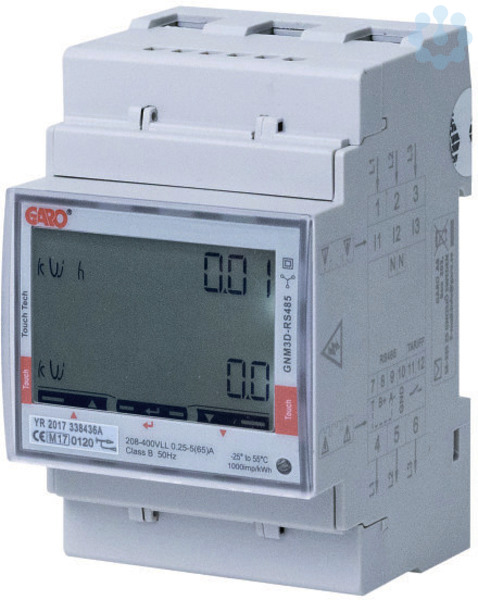 Dreiphasen-Energiezähler für Messwandler; 5A, 400V, 50/60Hz, bidirektional; Genauigkeitsklasse: B; Energieart: Wirk- und Blindleistung; Anzeigeart: digital; LCD mit Hintergrundbeleuchtung; Menügeführt über Touch-Display; Montageart: Einbau; Breite in Teilungseinheiten: 3TE; BxHxT (mm): 54x90x63; Ausführung der Schnittstelle: Modbus RS485; Schutzart: IP51; Umgebungslufttemperatur: -25°C bis +65°C