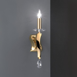 Wandleuchte gold glänzend, mit Kristallen, gold, sonstige. Ausführung in kompakter Bauform für die harmonische Implementierung in stimmige, architektonische Raumkonzepte. Wandanbauleuchte, mit Kristallen. Ausführung: E14, Montageart: Anbaumontage, Montageort: Wandmontage, Material: Messingguss / Kristall, Schutzart raumseitig: nach DIN EN 60529: IP20, Schutzklasse: (EN 61140) I, Spannung: 230V AC 50Hz, Leistung: 40 W, Anzahl der Leuchtmittel / Fassungen: 1 Stück, ohne Betriebsgerät, Art der Dimmung: sonstige.