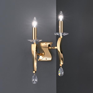 Wandleuchte gold glänzend, mit Kristallen, gold, sonstige. Ausführung in kompakter Bauform für die harmonische Implementierung in stimmige, architektonische Raumkonzepte. Wandanbauleuchte, mit Kristallen. Ausführung: E14, Montageart: Anbaumontage, Montageort: Wandmontage, Material: Messingguss / Kristall, Schutzart raumseitig: nach DIN EN 60529: IP20, Schutzklasse: (EN 61140) I, Spannung: 230V AC 50Hz, Leistung: 80 W, Anzahl der Leuchtmittel / Fassungen: 2 Stück, ohne Betriebsgerät, Art der Dimmung: sonstige.