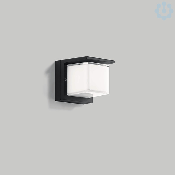 BEGA Decken-, Wand- und Pfeilerleuchte 24199. Einseitig abgeblendetes Licht. Für 1 Lampe mit einer Leistung von max. 60 W, Sockel E 27. Schutzart IP 65. Leuchte aus Aluminiumguss, Aluminium und Edelstahl, Farbe Grafit. Kristallglas innen weiß. Zwei Leitungseinführungen zur Durchverdrahtung der Netzanschlussleitung bis Ø 10,5 mm, max. 3 x 1,5 qmm. Abmessungen: 160 x 160 x 180 mm.