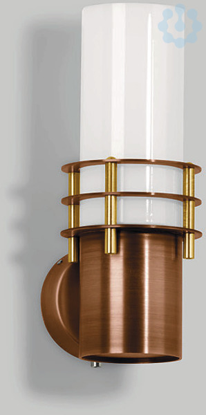 BEGA Wandleuchte 31224. Für 1 Lampe mit einer Leistung von max. 40 W, Sockel E 14. Inklusive BEGA LED-Leuchtmittel 13594. Schutzart IP 44. Leuchte aus Kupfer, Messing und Edelstahl. Opalglas mit Gewinde. Eine Leitungseinführung für Netzanschlussleitung bis Ø 10,5 mm, max. 3 x 1,5 qmm. Abmessungen: 95 x 240 x 115 mm. Montageplatten-Durchmesser: 75 mm.