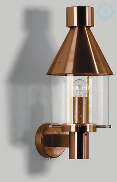 BEGA Wandleuchte 31441. Für 1 Lampe mit einer Leistung von max. 100 W, Sockel E 27. Inklusive BEGA LED-Leuchtmittel 13590. Schutzart IP 23. Leuchte aus Kupfer, Messing und Edelstahl. Mundgeblasenes Kristallblasenglas. Eine Leitungseinführung für Netzanschlussleitung bis Ø 10,5 mm, max. 3 x 1,5 qmm. Abmessungen: 210 x 450 x 240 mm. Montageplatten-Durchmesser: 110 mm.