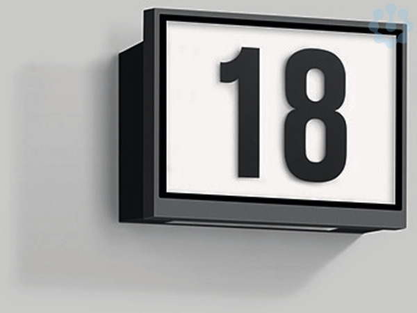 BEGA Hausnummernleuchte 24456K4. Mit zusätzlichem nach unten gerichteten Lichtaustritt. LED, 2,7 W Leuchten-Anschlussleistung, Leuchten-Lichtstrom 68 lm, Farbtemperatur 4000 K. Farbwiedergabeindex (CRI) > 80. Tiefstrahler mit LED 7,3 W Leuchten-Anschlussleistung, Leuchten-Lichtstrom 926 lm, Farbtemperatur 4000 K. Farbwiedergabeindex (CRI) > 80. Mit austauschbarem BEGA LED-Modul mit Übertemperaturschutz und einer Lebenserwartung von mindestens 50.000 Betriebsstunden. 20-jährige Nachliefergarantie auf das LED-Modul und die Verschleißteile. Mit LED-Netzteil, DALI-steuerbar, 220-240 V, 0/50-60 Hz. Schutzart IP 65. Leuchte aus Aluminiumguss, Aluminium und Edelstahl Beschichtungstechnologie BEGA Unidure® , Farbe Grafit. Sicherheitsglas, innen weiß, mit 1- bis 3-stelligen Zahlen, Höhe 100 mm. Zwei Leitungseinführungen zur Durchverdrahtung der Netzanschlussleitung bis Ø 10,5 mm. Abmessungen: 225 x 160 x 65 mm.