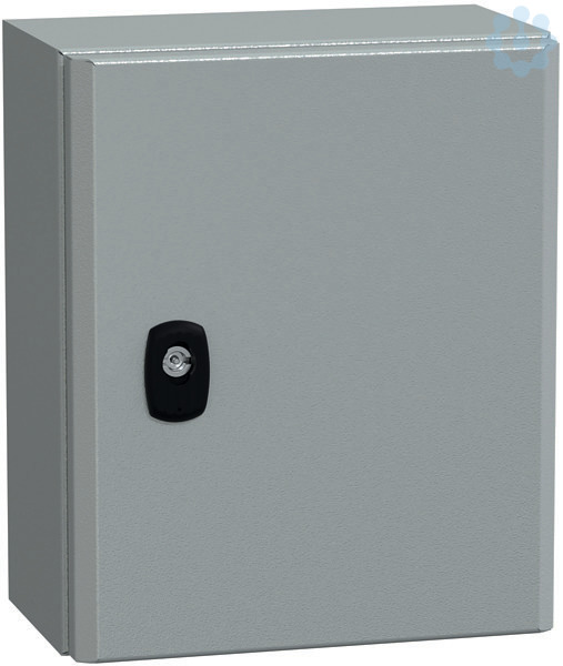Spacial S3D Wandgehäuse aus Stahl mit glatter Tür. Einteiliges Gehäuse, ohne Montageplatte. Robuste Konstruktion auf Basis eines neuen Designs. 3-Punkt-Verschlusssystem mit Handgriff und 3-mm-Doppelstabschlosseinsatz. Aus Stahl, Epoxid-Polyester-Pulverlackierung. Rinnenförmige Frontschiene, doppelte Blechstärke. Schutzart IP 66, IK10, Grau RAL 7035. 1 Kabelverschraubungsplatte enthalten, Standard. Umfangreiches Angebot an Zubehör. Die Verpackung ist nach der Montage wiederverwendbar.