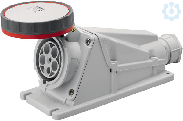 Wandsteckdose fuer industrielle Anwendungen gemaess IEC 60 309 (EN 60 309) mit Kabelverschraubung PG48, Anschlusstechnik: Schraubklemme, Anschlussquerschnitt 16 - 50 mm² feindraehtig / 25 - 70 mm² ein- oder mehrdraehtig,