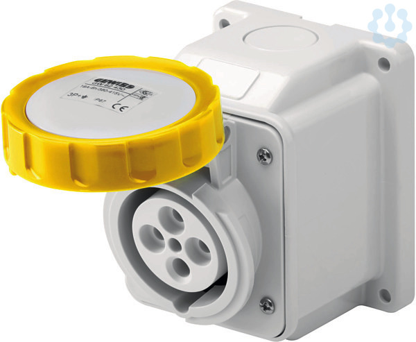 Wandsteckdose fuer industrielle Anwendungen gemaess IEC 60 309 (EN 60 309) mit Kabelverschraubung PG21, vernickelte Kontakte, Anschlusstechnik: Schraubklemme, Anschlussquerschnitt 1 - 2,5 mm² feindraehtig / 1,5 - 4 mm² ein- oder mehrdraehtig,