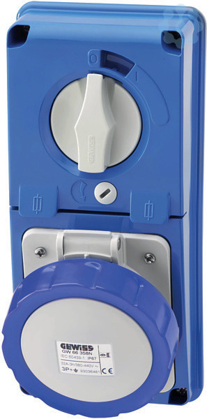 IEC Steckdose ohne Gehaeuseunterteil fuer senkrechte Anordnung mit Schalter und mechanischer Verriegelung. Der Schalter ist verriegelt und kann nur bei eingestecktem Stecker betaetigt werden. Durch ein Vorhaengeschloss kann die IEC Steckdose wahlweise im ein- oder ausgeschalteten Zustand gesichert werden. Die Zylindersicherungen sind als Sicherungstrenner unterhalb des Schalterantriebs angeordnet. Durch Oeffnen der Klappe werden die Sicherungen gezogen und sind zur Wartung zugaenglich. Fuer die Bemessungsstroeme 16 und 32 A ist die Groesse 10,3x38 mm und fuer 63 A die Groesse 22x58 mm eingesetzt. Zur Montage in Steckdosenkombinationen, Aufputz,- Unterputzgehaeusen und zum Einbau in Maschinen und Anlagen.