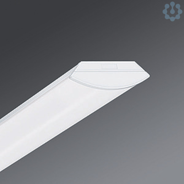 Leuchtenkörper Stahlblechprofil, trapezförmig gekantet, Stirnseiten weiß aus Polycarbonat, Leitungseinführungen Nähe Leuchtenmitte, Wannenbefestigung durch einrasten, Lichtverteilung direkt diffus mittels Wannenprofil aus weiß-opalem Acrylglas, konvex mit innenliegenden Längsprismen, aufsteckbare weiße Stirnseiten aus Polycarbonat, UV-stabilisiert, Elektrischer Anschluss über 5-polige Anschlussklemme in Steckkontakt-Technik, mit Notlicht Batterie 3h und integrierter Statusanzeige,