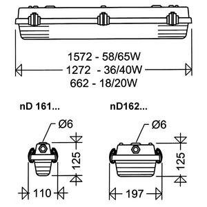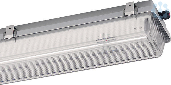 Ex-geschützte Polyester-Wannenleuchte für 2 x 36W-Leuchtstofflampe geeignet für Zone 2 (II 3 G Ex nA IIC T4 Gc) und Zone 22 (II 3 D Ex tc IIIC T80°C Dc), Gehäuse aus glasfaserverstärktem Polyester, abklapp- und aushängbares klares Polycarbonatglas mit Innenprismen, Scharniere und Verschlussklammern aus Edelstahl, eine Verschlussklammer als mit Werkzeug zu öffnender Sicherheitsverschluss ausgebildet, glasfaserverstärkter Polyesterreflektor mit aufmontierten elektrischen Komponenten, EVG mit "end-of-life-Abschaltung", Anschlussspannung 220-240V AC/DC, 0/50-60Hz, 2 Kabeleinführungen M20x1,5 (2 Verschraubungen, davon 1 mit Verschlussstopfen) , Anschlussklemme 3-polig, Klemmbereich max. 2,5mm², zulässige Umgebungstemperatur -20°C bis +40°C, Gebrauchslage horizontal nach unten oder vorne strahlend, direkte Befestigung an Decke oder Wand über vorgepresste Bohrungen, IP65, SK II