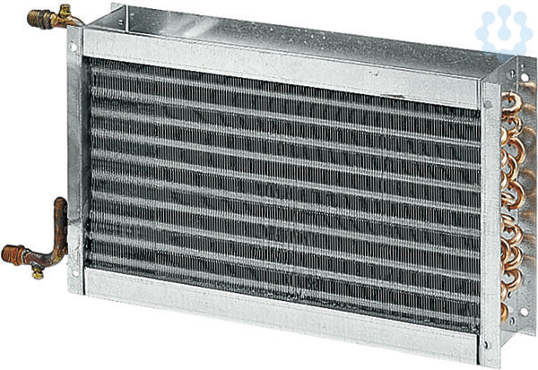 Wasser-Lufterhitzer für lüftungstechnische Anlagen. Wasseranschluss aus Kupferrohr mit Außengewinde. Montagehinweis: Hinter dem Ventilator in mindestens 1 m Abstand zwecks gleichmäßiger Anströmung montieren. Mit Entlüftung und Entleerung. Bei Montage auf Zugänglichkeit achten. Frostschutz bauseitig vorsehen. Mit versetzt angeordneten Sammelrohren, zur Aufnahme der Wärmeausdehnung schwimmend gelagert.Artikel: WHP 25-22, Max. Strömungsgeschwindigkeit: 3,5 m/s, Einbauort: Kanal, Einbaulage: senkrecht / waagerecht, Material Gehäuse: Stahlblech, verzinkt, Gewicht: 4,8 kg, Gewicht mit Verpackung: 5,86 kg, Kanalmaß: 500 mm x 300 mm, Breite: 645 mm, Höhe: 370 mm, Tiefe: 110 mm, Breite mit Verpackung: 825 mm, Höhe mit Verpackung: 460 mm, Tiefe mit Verpackung: 145 mm, Lufterhitzerart: Wasser, Heizleistung: 21700 W, Massenstrom: 936 kg/h, Vorlauftemperatur: 70 °C, Rücklauftemperatur: 50 °C, Max. Wassertemperatur: 100 °C, Max. Wasserdruck: 8 bar, Druckdifferenz Wasser: 10000 Pa