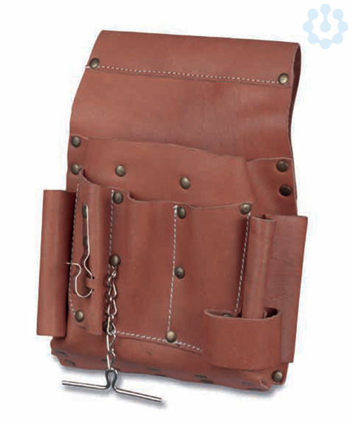 Werkzeug Gürteltasche aus strapazierfähigem, geschmeidigem Vollrindleder. 1 Halter für Isolierbandrollen, 5 Außenfächer und 1 Hammerschlaufe. Maße 240 x 270 mm