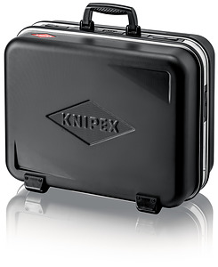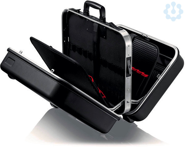 00 21 42 LE Werkzeugkoffer "BIG Twin" Frei stehend in allen Öffnungslagen durch beidseitig angebrachte, rastende Deckelhalter mit Scharniermechanik, Winkel frei einstellbar. Ein- oder beidseitig zu öffnen; Boden und Deckel lassen sich unabhängig voneinander öffnen. Beschriftungsfeld mit zwei Aufklebern zur individuellen Kennzeichnung. Max. Zuladung: 25 kg. 38 Liter Fassungsvermögen. Strapazierfähige Ausführung aus ABS-Material, schwarz. Umlaufender Aluminiumrahmen mit fest montierter, stabiler, beidseitig bestückbarer Mittelwand, mit vielseitigen Einsteckmöglichkeiten durch elastische Schlaufen und zwölf kleinen Taschen. Metallscharniere. Dreistelliges Zahlenschloss zum sicheren Verschließen des Koffers. Je zwei Metall-Kippschlösser zur Fixierung des Deckels und des Bodens. Herausnehmbares Dokumentenfach und herausnehmbare Werkzeugtafel aus schmutzabweisenden PP-Hohlkammerplatten mit 13 Werkzeugtaschen. Bodenschale, per Druckknopf fixierbar, Höhe 58 mm, durch flexible Einsätze unterteilbar und Abdecktafel mit sechs großen Werkzeugtaschen. Insgesamt 95 Steckmöglichkeiten. - Abmessung Breite außen (innen): 520mm 490mm - Abmessung Höhe außen (innen): 435mm 370mm - Abmessung Tiefe außen (innen): 250mm 110mm / 100mm