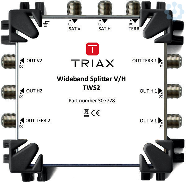 Der TWS2 Verteiler ist speziell für die Verwendung mit Wideband-Systemen mit Satelliten-ZF-Frequenzen von 290 MHz bis 2340 MHz und terrestrischen Frequenzen zwischen 5 MHz und 862 MHz ausgelegt.