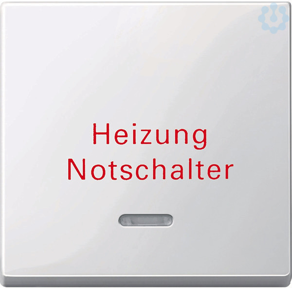 Für Kontrollschalter- und Taster-Einsatz. Mit Kontrollfenster und Kennzeichnung /Heizung Notschalter/. Zu komplettieren mit Schalter und Taster, 1-fach. Material Thermoplast brillant. Farbe polarweiß glänzend.