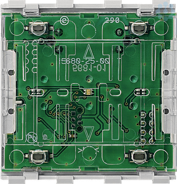 Wiser Taster-Modul, 1fach Einsatz fuer ELSO JOY. Wiser Taster-Modul, 1fach, Im Design ELSO JOY. Taster-Modul ohne Wippe. Das Taster-Modul wird auf den gewünschten Einsatz mit Modul-Schnittstelle aufgesteckt und mit der Wippe für Taster-Modul 1fach des passenden Designs komplettiert. Fernbedienbar und programmierbar über die Wiser Room App. Sie können über die App Einstellungen vornehmen und zusätzliche Funktionen nutzen, wie z.B: Zeitschaltuhr, Zufallsfunktion, Magnetkontakt, Sonnenschutzfunktion, Orientierungslicht. Funktionen: Lokal Jalousien/ Rollladen steuern, Zeitschaltuhr, Zufallsfunktion, Sonnenschutz-Funktion: Jalousiesteuerungs-Einsatz, Global Jalousie/Rollladen steuern, Zeitschaltuhr, Zufallsfunktion: Zentralstellen-Einsatz. Bedienelemente: 2 Tasten, Anzeigeelemente: 1 Status-LED, 1 Orientierungs-LED, Anschluss: Modul-Schnittstelle. Zu komplettieren mit: Zentralstellen-Einsatz MTN5190-0000, Jalousiesteuerungs-Einsatz MTN5165-0000, Zu komplettieren mit: Wippe für Taster-Modul 1fach (Pfeile Auf/Ab) JOY ELG36750x. Hinweis: Die Wiser App ist für AndroidTM (ab Version 5.1) und iOS (ab Version 10.3) in den App Stores erhältlich. Steuerbar mit Wiser App über Bluetooth (Verfügbar bei Geräten mit Bluetooth Smart Ready ab V4.1).
