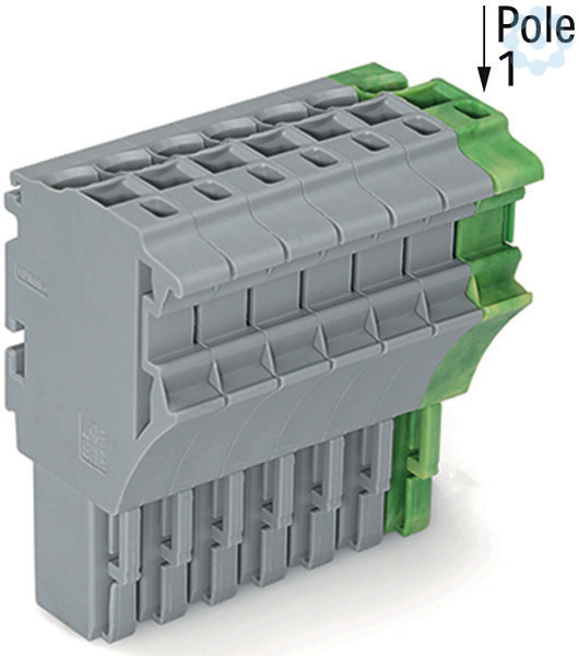 1-Leiter-Federleiste; Push-in CAGE CLAMP®; 4 mm²; Rastermaß 5,2 mm; 7-polig; 4,00 mm²; grau/grün-gelb