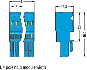 1-Leiter-Federleiste; CAGE CLAMP®; 4 mm²; Rastermaß 5 mm; 13-polig; Kodiernase; 4,00 mm²; blau