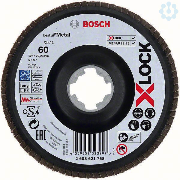 X-LOCK Fächerschleifscheibe, Metall , gewinkelte Ausf., G 60, X571, 125mm, K