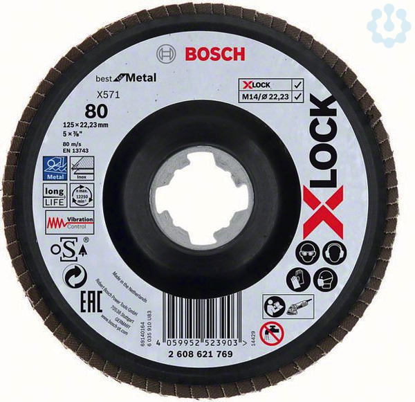 X-LOCK Fächerschleifscheibe, Metall , gewinkelte Ausf., G 80, X571, 125mm, K