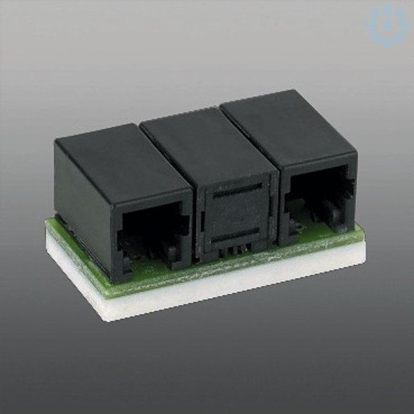 Y-Verteiler mit RJ-10-Buchsen für Geräteanschlüsse inklusive Klebepad.