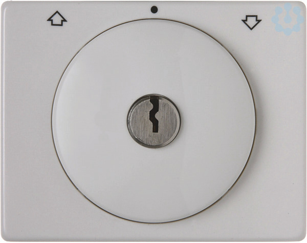 Z.-Stk. mit Schloss für Jalousie-Schlüsselschalter Arsys polarweiß, glänzend. Zentralstück mit Schloss für Jalousie-Schlüsselschalter, mit Aufdruck und Tast-Rast-Funktion, 2 Schlüsseln (gleichschließend), Schlüssel in 0-Stellung abziehbar.