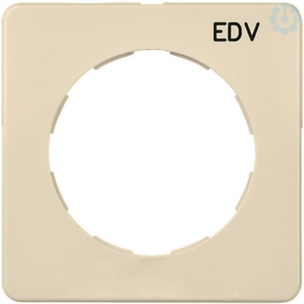 Zentralplatte für Steckdose mit Aufdruck EDV, zur Komplettierung der Steckdoseneinsätze Artikelnummer 22501- und 22521-. Farbe: reinweiß.