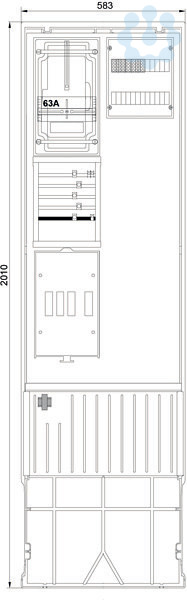 Zähleranschlusssäule 2-feldrig H=2010mm, 3.HZ, Haube mit Tür