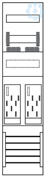 Zählerfeld 1-feldrig, 2-Zählerplätze eHZ, Höhe 1050 mm, Breite 250 mm, Sammelschienensystem 5-polig