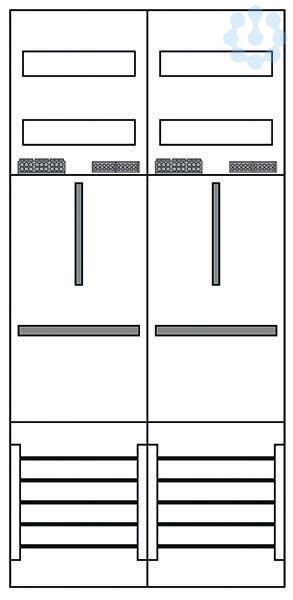 Zählerfeld 2-feldrig, 2-Zählerplätze 3.HZ, Höhe 1050mm, Breite 500mm, Sammelschienensystem 5-polig