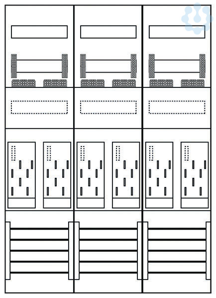 Zählerfeld 3-feldrig, 6-Zählerplätze eHZ, Höhe 1050 mm, Breite 750 mm, Sammelschienensystem 5-polig