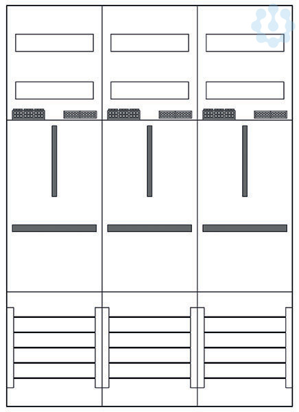 Zählerfeld 3-feldrig, 3-Zählerplätze 3.HZ, Höhe 1050mm, Breite 750mm, Sammelschienensystem 5-polig