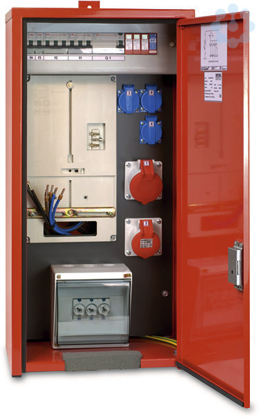 Zählerverteiler, Anschluss D02/35A, 1xZählerfeld, 3xSchuko16A, 1xCEE5x16A, 1xCEE5x32A, 1xFI40/0,03A, 1xÜberspgsabl.T2 4pol.