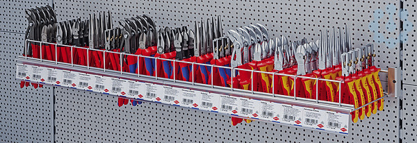 Auslieferung erfolgt unbestückt. Zur Befestigung an Lochplattenwänden. Verschiedene Ausführungen. für 18 x 6 Zangen Stahldraht, pulverbeschichtet, silber