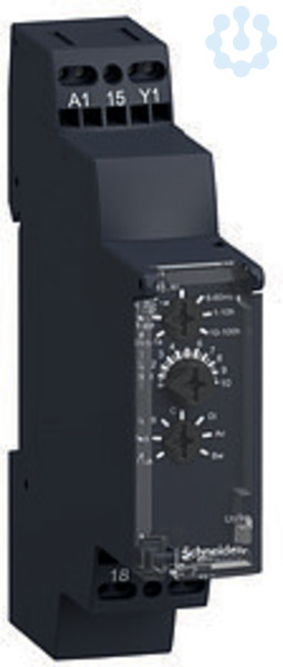 Zeitrelais der Beureihe Harmony. Elektronisches Zeitrelais zur Steuerung von Automatisierungsanwendungen. Es verfügt über 10 Zeitfunktionen. Der Zeitbereich beträgt 0,1 s - 100 h. Die Einstellungen erfolgen über Bedienelement in der Front, die unter einer Klarsichtabdeckung gegen Veränderungen geschützt werden können. Eine LED zeigt den Status an. Die Baubreite beträgt 17,5 mm und die Montage erfolgt auf der Hutschiene. Die Versorgungsspannung beträgt 24-240 VAC/DC.