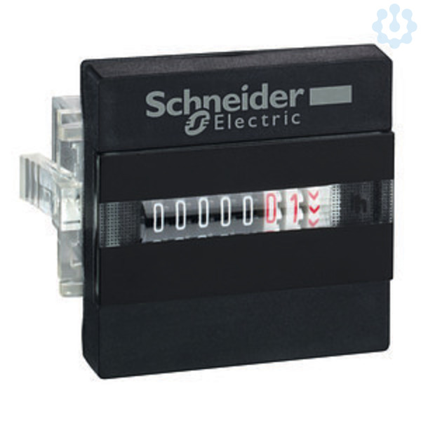 Zelio Count. Zeitzähler oder Betriebsstundenzähler mit mechanischer 7-stelliger Anzeige zur Montage im quadratischem Ausschnitt 45x45 mm für Fronteinbau. Versorgungsspannung 230 VAC. Netzfrequenz 50 Hz.