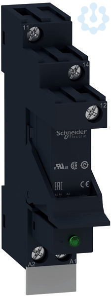 Zelio Relay. Vormontiertes und direkt einsetzbares Interface-Relais RSB bestehend aus Relais, Sockel, Schutzmodul mit LED-Anzeige, Haltebügel und Beschriftungsschild. Anzahl Kontakte- 1, Ausführung- Relaiswechsler, Kontaktbelastbarkeit- 12 A. Spulen-Steuerspannung- 24 VDC. Stecksockel mit Schraubklemmen in getrennter Anordnung zur Montage auf Hutschiene oder aufschraubbar auf Montageplatte. Schutzmodul- Diode. Kunststoffhaltebügel zur Fixierung und einfachen Entnahme des Relais. Beschriftungsschild zur Kennzeichnung. Alle Komponenten sind einsatzfertig montiert und das vormontierte Relais kann sofort eingesetzt werden.