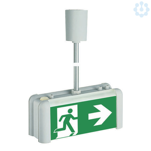 Zentralbatterieleuchte inkl. 2 Abdeckhauben und 4 Piktogrammfolien (Pfeil links, rechts und 2x unten) gem. ISO 7010. Zum Anschluss an 230 V AC/DC Zentralbatteriesystem.