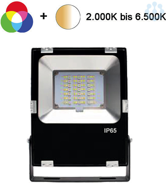 Der ZEUS RGB+CCT Fluter ist ein robuster Fluter, sowohl für den Innen- als auch für den Außenbereich. Das stabile Alu-Druckgussgehäuse mit gehärteter Glasabdeckung garantieren eine lange Lebensdauer. Zusätzlich zu ROT, GRÜN und BLAU sind warmweiß (2.000K) und kaltweiß (6.500K) enthalten. Dadurch können auch verschiedene Weißtöne eingestellt werden. Der RGB Fluter kann im dynamik Modus (über Fernbedienung wählbar) selbständig die Farben wechseln (RGB). Zur Farbeinstellung kann mittels Amazon Alexa, Google Home Assistent, Philips Hue usw. gesteuert werden oder es ist dafür optional eine Fernbedienung erhältlich.
