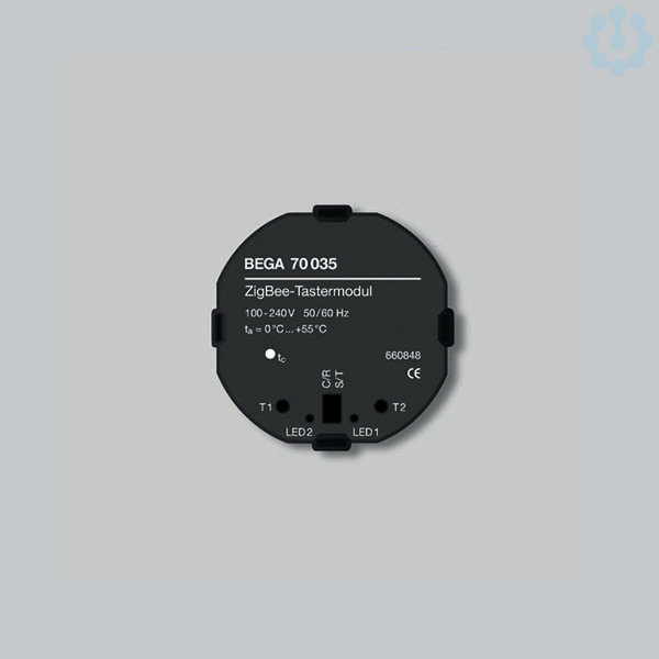 BEGA 70035 ZigBee Tastermodul IP 20 mit integrierter 2,4-GHz-Antenne zur Verwendung im Innenraum und überall dort, wo keine höhere Schutzart erforderlich ist. 2 Eingänge für potenzialfreie Taster. Kann als Router oder Koordinator in ZigBee Netzwerken eingesetzt werden. Spannung 100 - 240 V, 50 / 60 Hz.