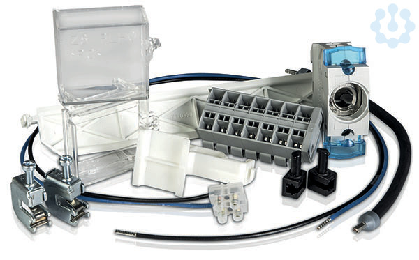 Zubehörpaket je TRE-Feld D01 Sicherungssockel mit Geräteträger und Plombierhaube, Steuerleitungsklemme 7 pol. steckbar 4 Pole je Abgang, kurzschlußfeste Leitung 4mm² 650mm + 2 SSK16 L-N Verdrahtung bis VNB-Raum / APZ-Platz