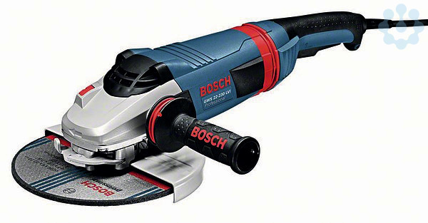 Winkelschleifer GWS 22-230 LVI, Der kabelgebundene große Winkelschleifer GWS 22-230 LVI Professional aus der 2.200-Watt-Klasse liefert effiziente Leistung für Schleifanwendungen und bietet hohen Anwenderschutz. Sein 2.200-Watt-Motor gewährleistet starke Ergebnisse beim allgemeinen Arbeitseinsatz. Der Schutz für den Anwender ist hier dank KickBack Control und Wiederanlaufschutz des Schleifers besonders hoch. Das Gerät verfügt über einen Haupthandgriff mit Vibration Control und einen Zusatzgriff mit Vibration Control, wodurch bis zu 50 % der Vibration absorbiert werden. Dieses Elektrowerkzeug wurde zum Trennen und Schleifen von Metall, Fliesen und Mauerwerk konzipiert. Das Gerät ist mit der Absaughaube GDE 230 FC-T Professional und dem Bosch Click & Clean System kompatibel. Der GWS 22-230 LVI Professional verfügt auch über eine Schutzhaube. Aufnahmeflansch (1 605 703 099); Spannmutter (1 603 340 040); Schnellverstellbare Schutzhaube (2 605 510 281); Tri-Control-Schalter; Zweilochschlüssel (1 607 950 048); Zusatzhandgriff Vibration Control (2 602 025 181)