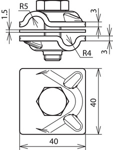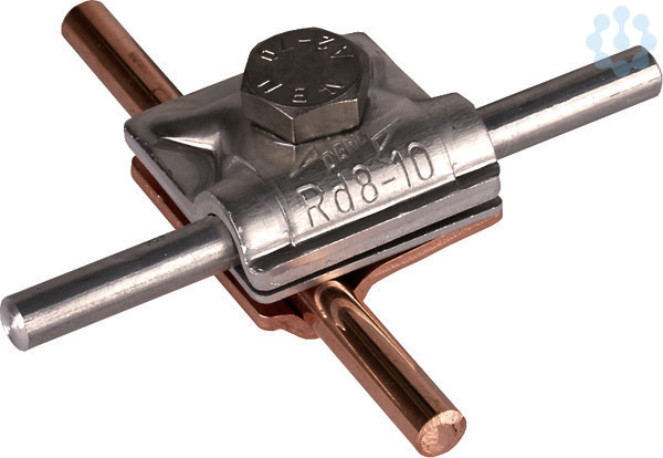 Zweimetall-MehrzweckVerbindungs-Klemme nach DIN EN 62561-1, zur universellen Verwendung als Kreuz-, T- und Parallelklemme von Rundleitern. Ausführung dreiteilig mit Sechskantschraube und Gewinde im Unterteil.