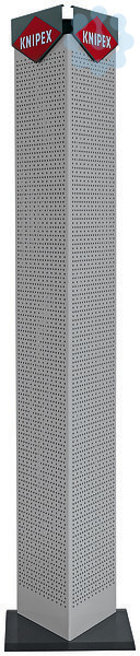 Leichter und schneller Aufbau. Auslieferung erfolgt unbestückt: Zangen, Magnetstreifen und Haken bitte separat bestellen. Zur Erweiterung des Produktsortiments. Drei Präsentationsflächen. Abmessungen (B x H x T): 390 x 1850 x 390 mm. Stahlblech, pulverbeschichtet, silber
